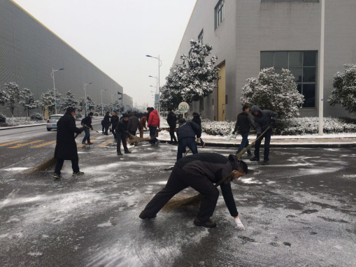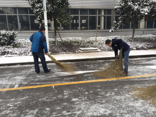 首頁 > 集團新聞1月31日晚的一場大雪把新譽裝扮得銀裝素裹,但積雪也使得廠區道路變得濕滑。第二天一早,BCP的志愿者提前來到公司,及時清除路面冰凍,保障職工交通安全。